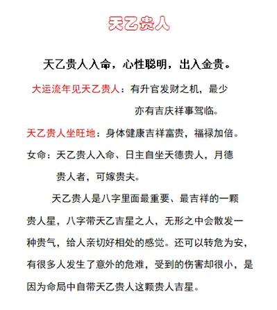 增强运势:天乙贵人能够提升个人的整体运势,使人在事业、财运、健康等方面更加顺利。