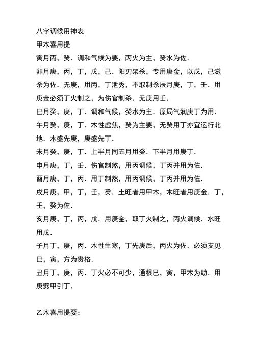 3. 提升命运层次:通过调候用神,可以提升个人的命运层次。例如,如果八字中木旺,而木又代表事业,那么可以通过水来调候,因为水生木,能够增强事业发展的潜力。